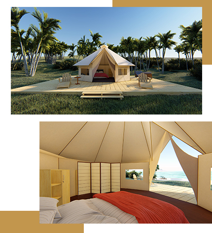 5 yıldızlı otel konforunda, değişen taban alanı ile benzersiz iç mekan seçenekleri ile %100 su geçirmeyen ve alevlenmeyen malzemeden üretilen GLAMPING çadırlarmız ile konforu yaşayın ve hissedin.